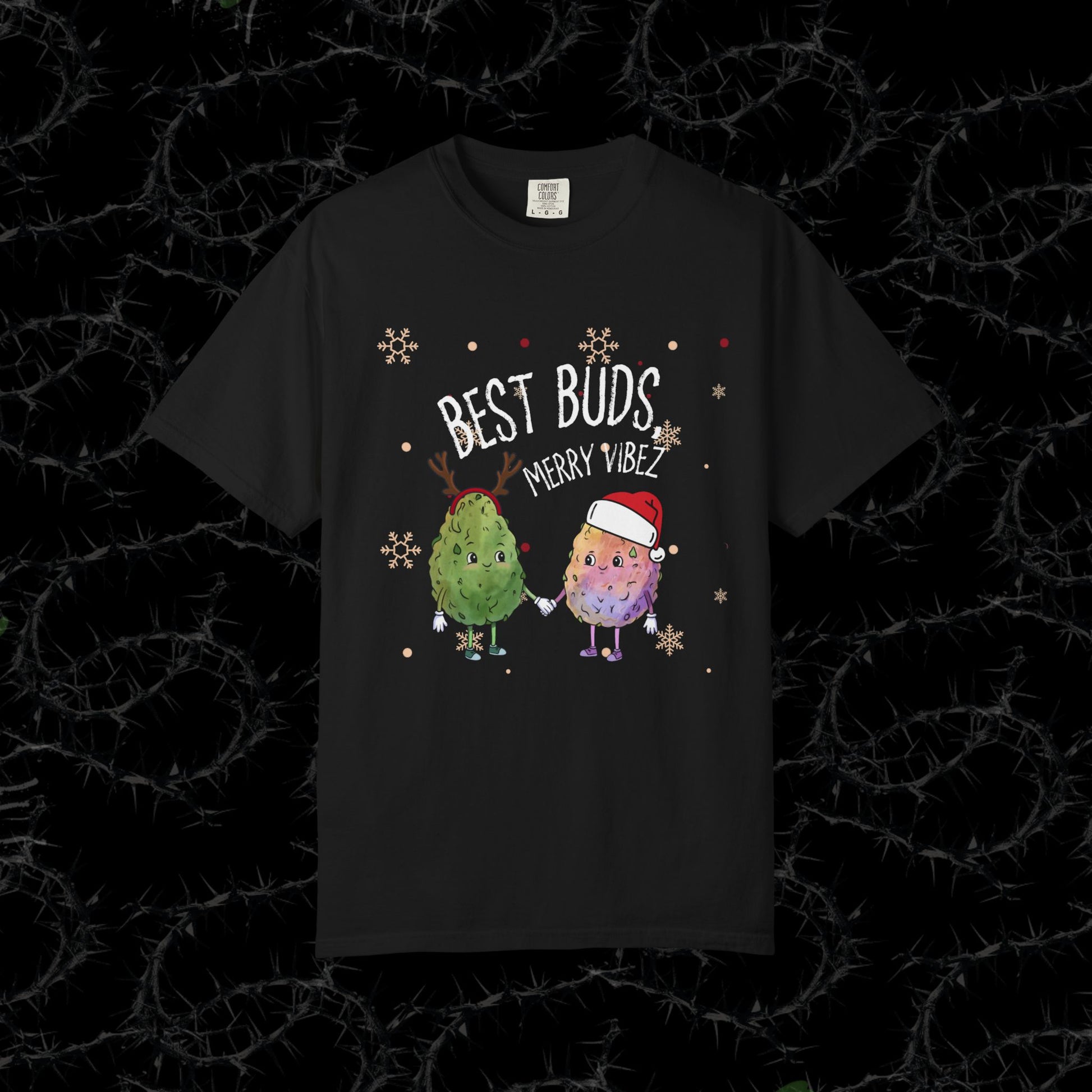 BEST BUDS, MERRY VIBEZ - Unisex Garment-Dyed T-shirt
