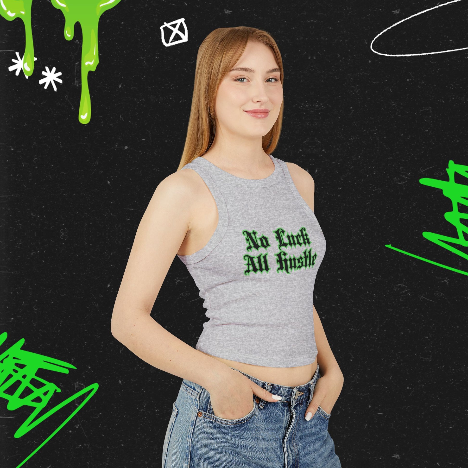 No Luck ,All Hustle - Women's Micro Rib Racer Tank Top